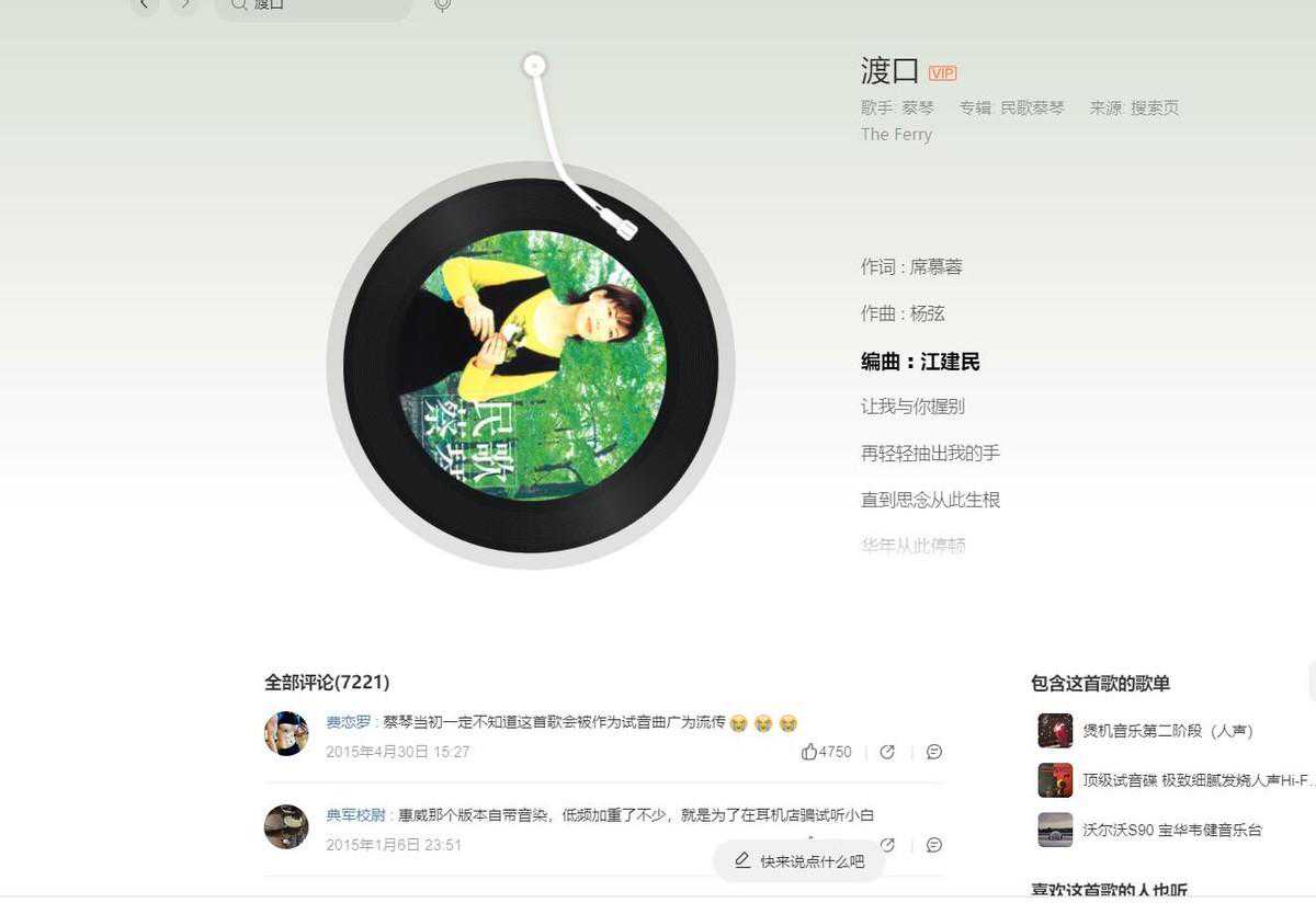 在音乐方面表现也非常不错。蔡琴的《渡口》这首歌曲中高音部分下沉力度适中,人声还原让人印象深刻,从歌手中感受到蔡琴歌声的魅力。