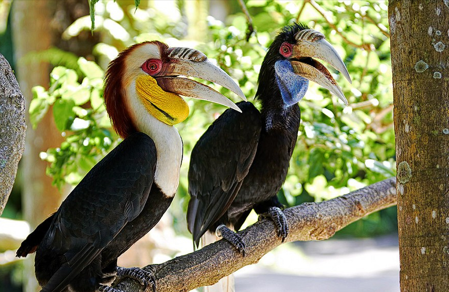 巨嘴鸟就是鵎鵼[tuǒkōng],略似犀鸟,喙极大,但重量较轻,边缘有锯齿,多具鲜艳彩色花饰。羽色鲜艳,以黑色为主。