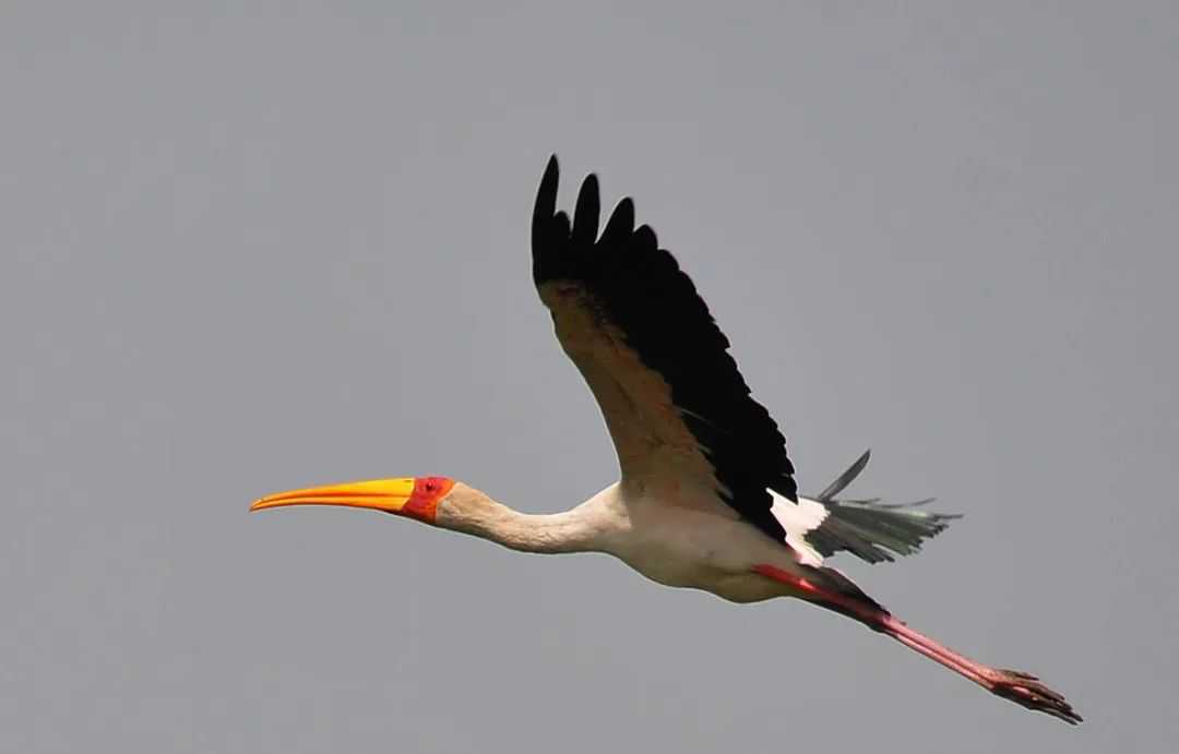 黑鹳是白俄罗斯的国鸟,嘴和脚红色。身上的羽毛除胸腹部为纯白色外,其余都是黑色,在不同角度的光线下,可以映出变幻多种颜色。
