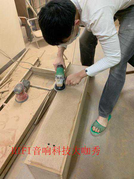依序以沙轮机和砂纸机做音箱的表面研磨