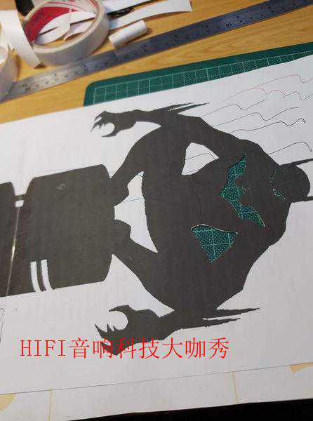 再贴到塑料贴皮上,用笔刀割下来,再转贴到喇叭上