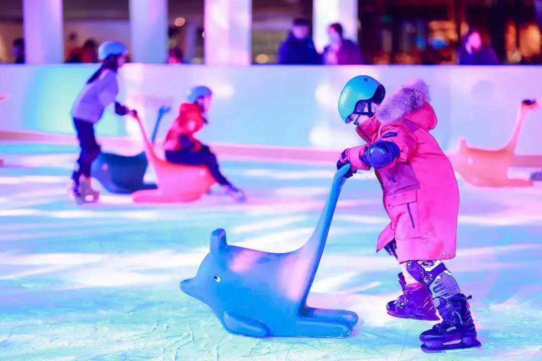 此次冰雪节打造了1200平方米户外真冰场地,场地可以欣赏到“魔都三件套”的全貌。冰上运动有专业教练助阵,还有冰上表演、定制冰场灯光秀等活动。