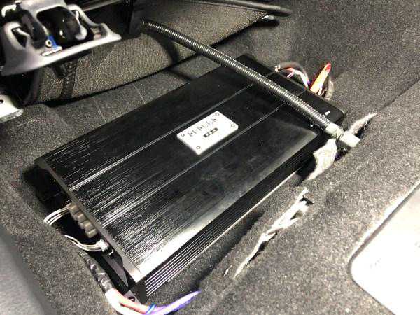 弗莱德FA4四声道功放安装在前座椅底下,不占用位置,而且很好地隐藏起来。