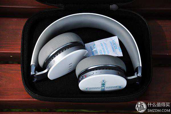 ▼拉开拉链,内层嵌有绒毛,耳机的摆放位置并非堆对称,底部的凹槽为预设的造型提供了固定空间。