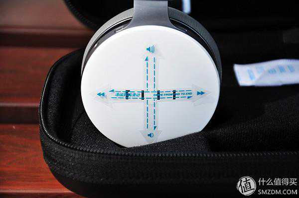 ▼两个耳罩的侧上方均有一个开孔,这个组件是为了实现降噪功能设计的识别孔,噪音通过这个识别孔进入耳机后,耳机会判定当前的噪音情况,针对性的发出反向声音,来消解噪音。如果在开启降噪模式状态下,触摸这个识别孔,耳机会发出令人不适的杂音。