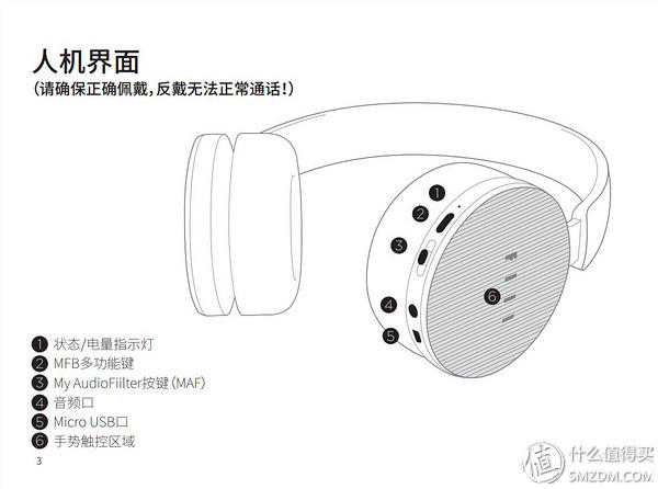 ▼按键方面,依然集中在右侧耳罩,右上之下,分别是状态/电量指示灯、MFB多功能键、MyAudioFiilter按键、音频口、Microusb口。