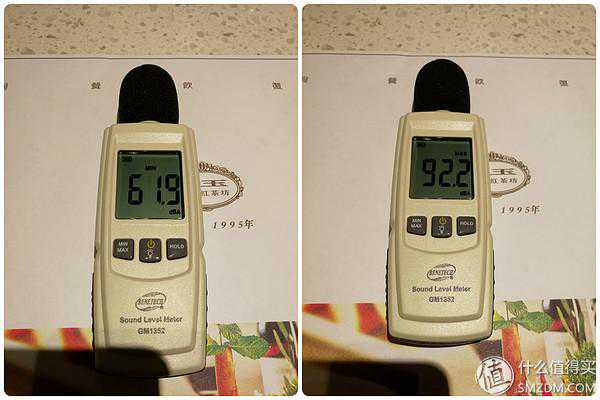 【餐厅】:餐厅由于人流集中,且设备较多,低频噪声较为明显。从音量计的显示结果来看,最低61.9dB,最高92.2dB。