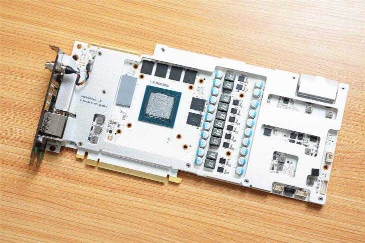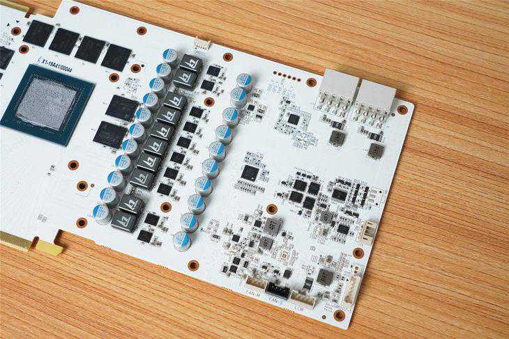 RTX2070Super十周年纪念版仍然采用名人堂系列标志性的纯白色PCB板。颜值一如既往的高。做工水平也令人满意。