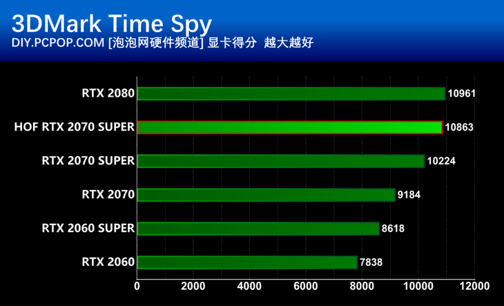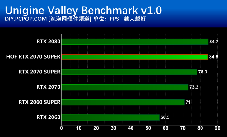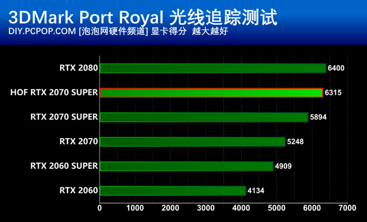 影驰名人堂RTX2070Super的最高Boost频率达到了1905MHz,凭借远高于公版RTX2070Super的频率,性能提升达到了6-7%左右。相比RTX2070提升达到18%,几乎已经接近了RTX2080的性能水平。