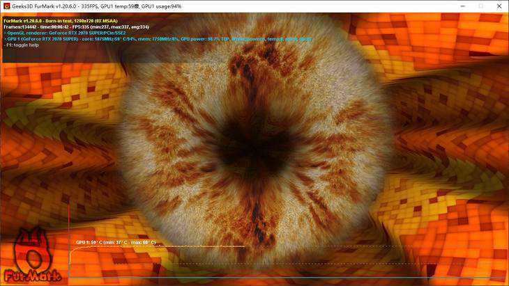 我们在室温25℃下,使用Furmark进行一段时间的压力测试,开启一键风扇加速模式,记录待机和峰值温度。