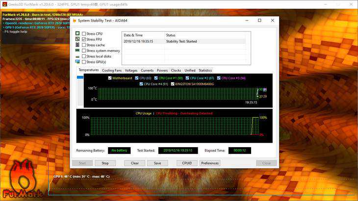 我们使用AIDA64内置的压力测试单烤FPU令CPU满载,同时开启Furmark,令平台主要硬件满载。使用功耗仪记录电源输入功率。