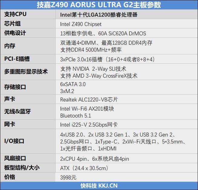 技嘉Z490AORUSULTRAG2主板参数如下: