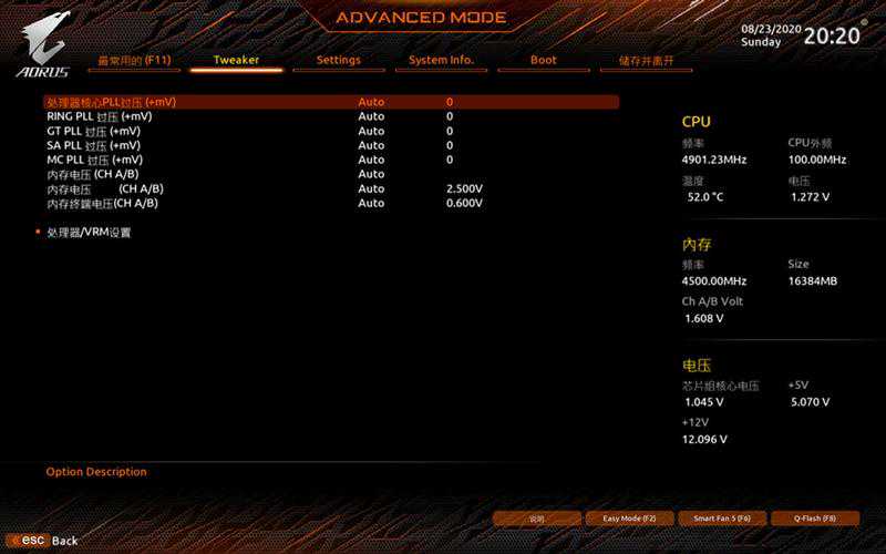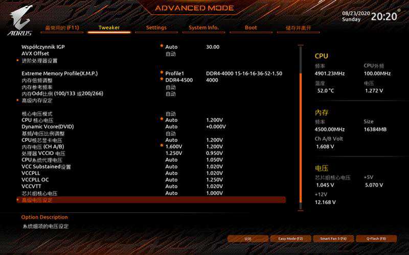 “Tweaker”界面可以对CPU、内存进行各种超频设置。