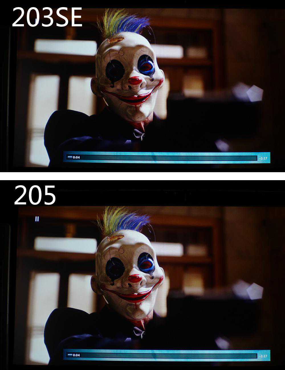 左图为UDP-203SE,而右图为205。很明显,这两台机器的对比度有一定的区别。
