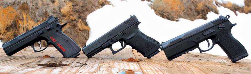 三种手枪对比。自左至右分别为CZ97B、Glock20、FKPSD手枪