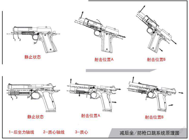 常规手枪射击时后坐力和枪口跳动情况