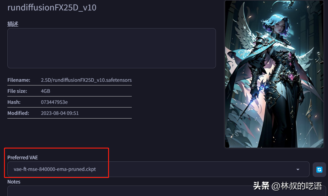 顺便说一句,主模型也能看到类似的信息,虽然展示数据的维度比LoRA少了很多,但是现在你可以预先设置主模型偏好的VAE