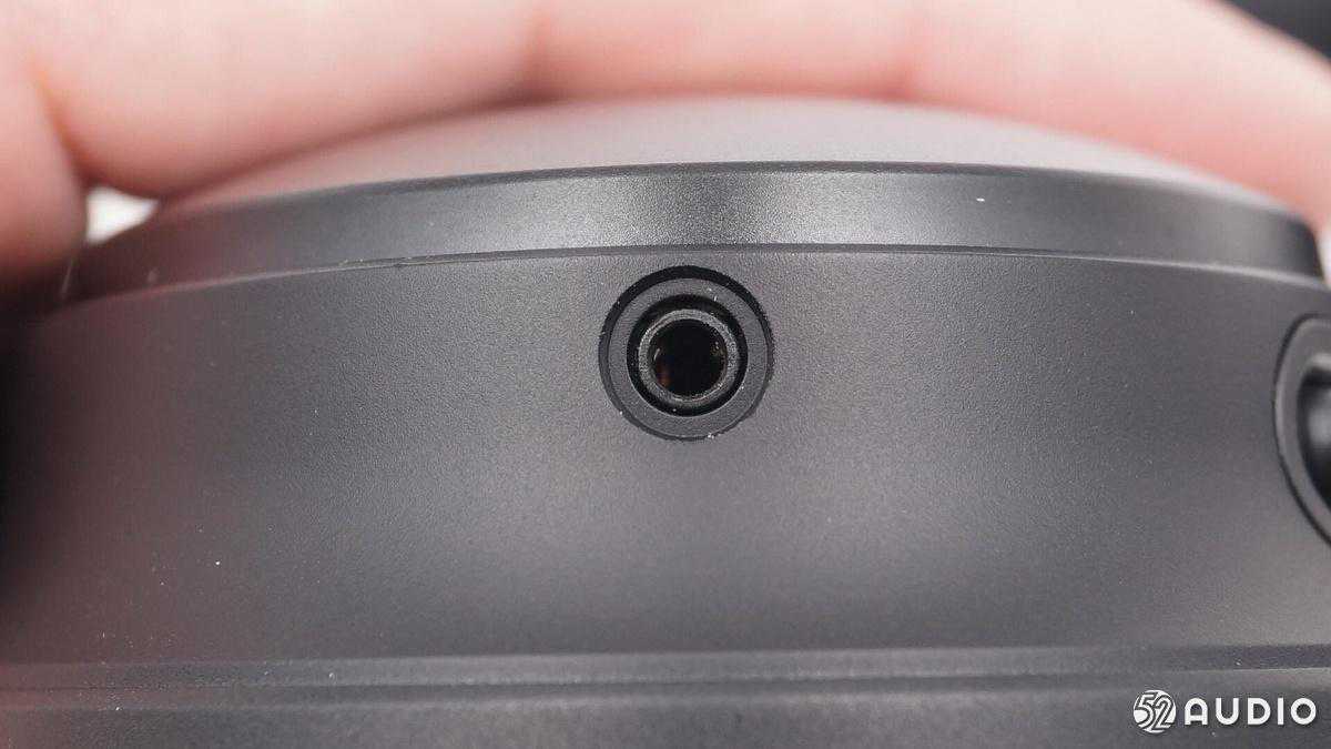 左侧耳罩的3.5mm音频接口,外接3.5mm音频线可以变为有线耳机。