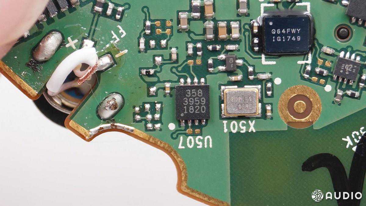 右耳电路板的背面是两颗DSP芯片,用于降噪功能。