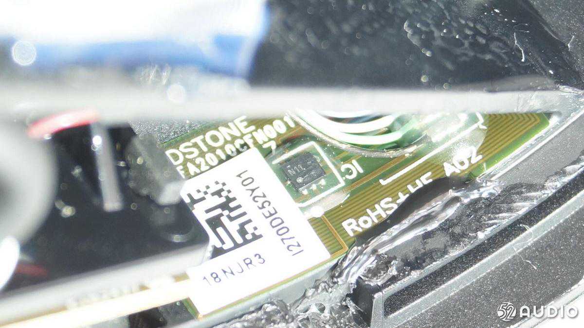 里面是一个螺丝固定的小板,板上焊接连接两个耳机的导线,左侧是NFC贴片天线。