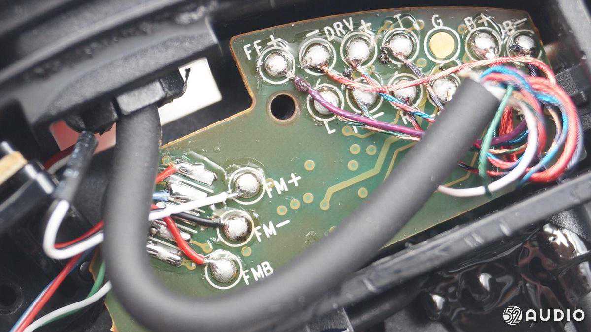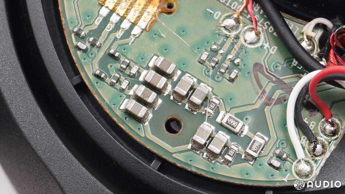 这块电路板上焊接着电池和音频输入以及连接到另外一只耳机的连线。