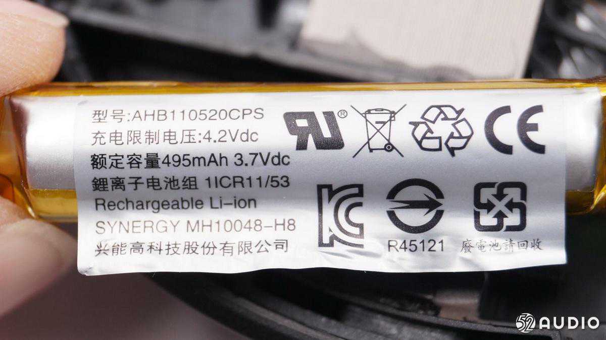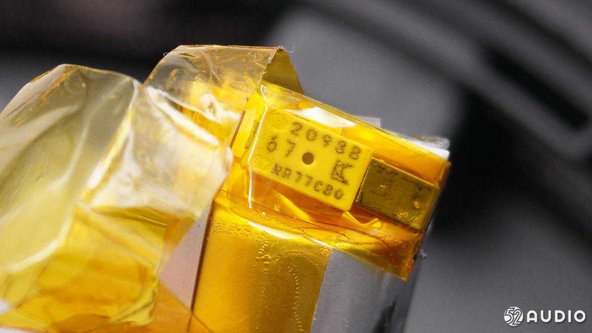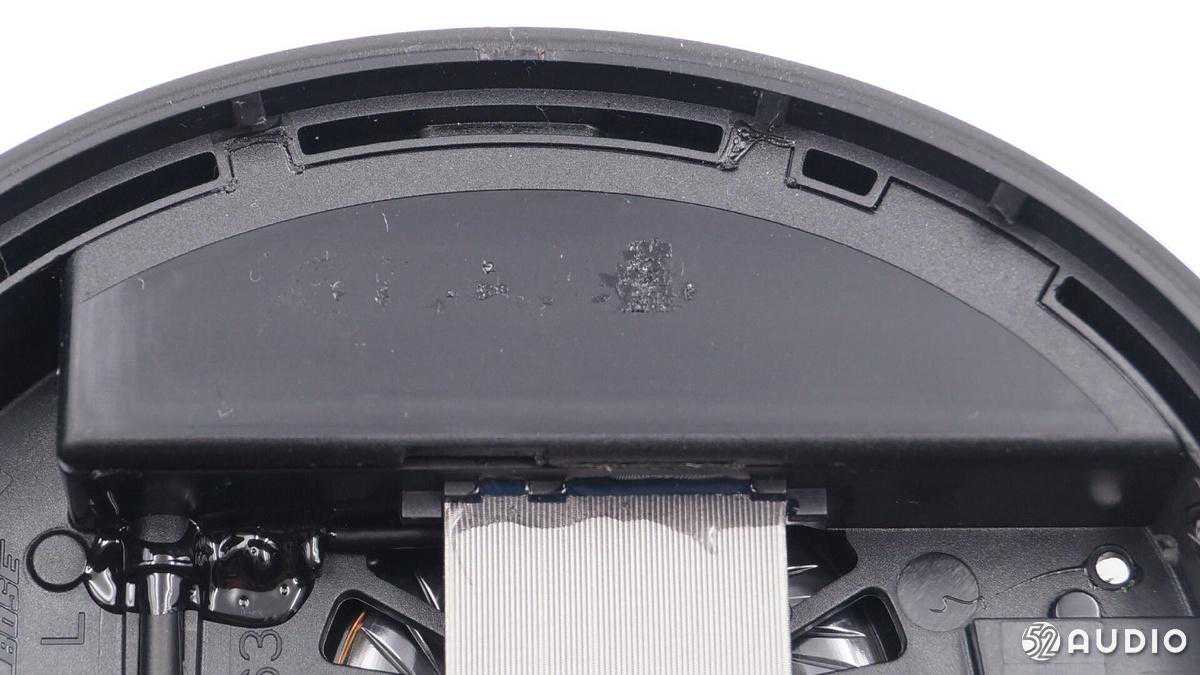 左侧的耳机内部是电池仓,下面可以看到单元振膜的纹路。