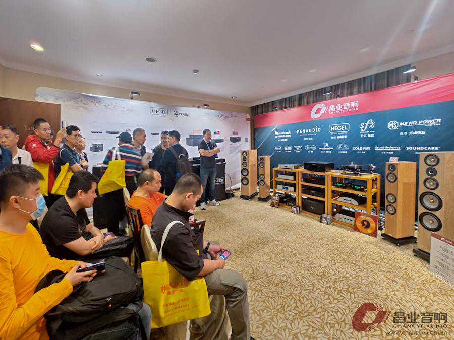 昌业的展位位于东方宾馆展区五层的526房,三日中一直保持稳定的参观人流量。从今年昌业参与的近十个音响展来看,广州的人气还是明显高于国内的其他城市。展位主展区展示着昌业代理的HEGEL、Penaudio、SFORZATO、MuarahAudio、ATOLL的主要产品系列和多个组合分别示范;两旁则有ATOLL+RossoFiorentino以及HEGEL产品线的静态陈列展出。