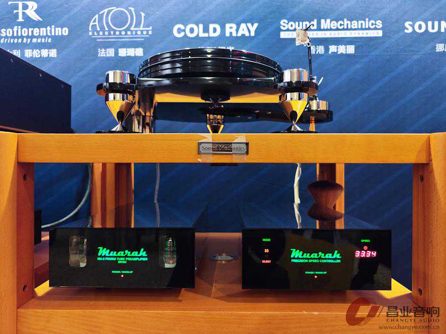 新引进的MuarahAudio波兰之声,展出的进阶款MT2SE(特别版)黑胶唱盘,配置了丹麦莫克单点式12寸高级唱臂,分体式高扭力电机;真皮与不锈钢一体设计的转盘和唱片垫;专利多功能速控器PSC-精密速度控制器InteliClamp®这次终于在展会上展示出它精准的速度控制,33转与45转的转速,可以精确到小数点后两位参数的实时修正,不用在意皮带的老化带来的转速偏差,堪比直驱唱盘的精准度,又有皮带式转动的超低抖动与宁静。MU-2MM/MC电子管唱放能带来与晶体管设计唱放不一样的轻松厚润风格,对温和录音的人声和室内乐重放有着独到的韵味,为LP发烧友提供多一种搭配选择。