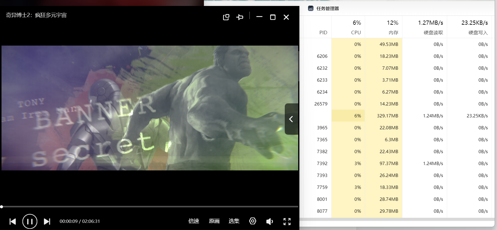 接下来我使用绿联DX4600Pro与绿联DX4600同时解码同一个电影,来看看CPU占用与内存占用。