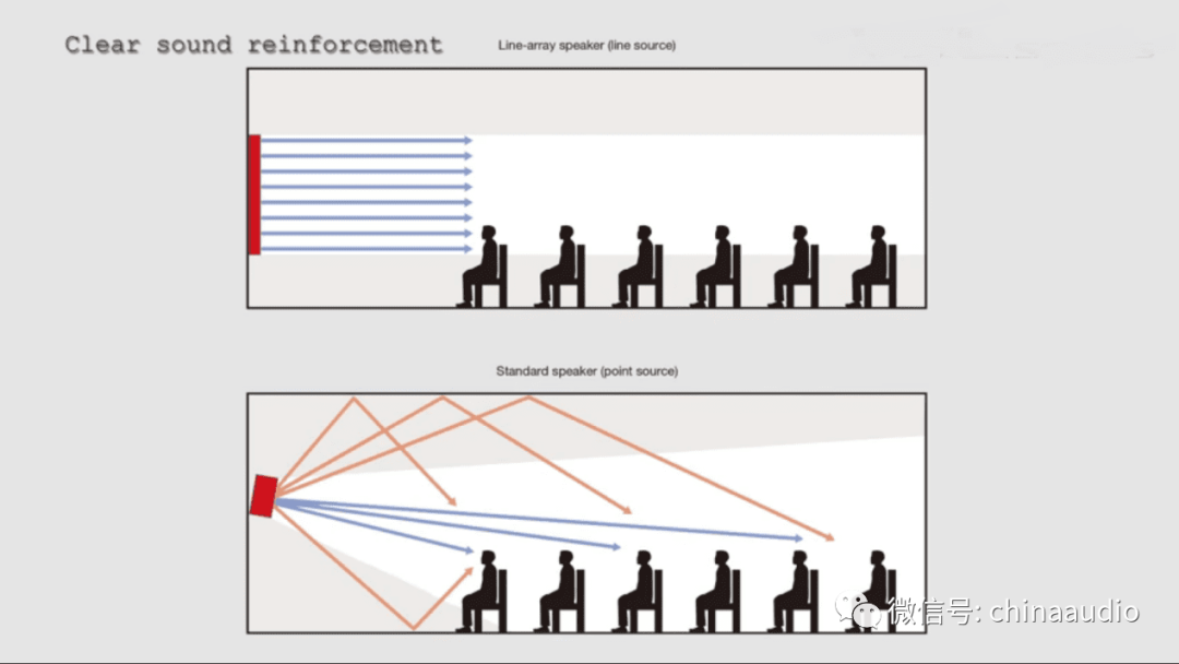 由于线性音源音量衰减较少,所以即使是在不同位置的观众,也能有较接近的听觉体验。