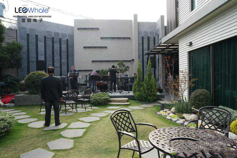 一般人喜欢音乐,大不了买一套音响器材了事,可是罗先生喜欢音乐,却不满足于只听音响,他还要自己玩音乐,上台唱歌,演奏,还要与亲朋好友同乐,连整套乐器与舞台音响都买,这样的音响迷可说是全方位的音乐迷了。我要走之前,他还亲自在庭院舞台上试麦克风,要求乐队调出他想要的麦克风唱歌效果。我猜,说不定下次我来时,他可能已经组成一个「董事长乐队」,自己上台演出娱乐嘉宾了。
