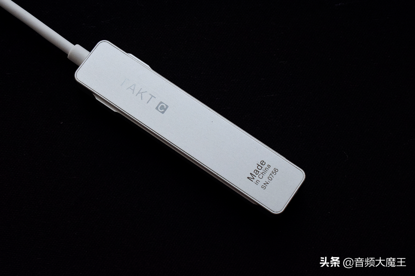 相比较原始形态的TAKT,我对TAKTPRO更为熟悉。与之前的TAKTPRO可换线设计不同,TAKTC采用机线一体式设计,线长约10厘米,虽然少了丰富的拓展插口(使用范围受限,基本上只能提供给具备Type-C接口安卓手机/平板/电脑使用),但也更具有针对性。从我个人角度来看,TAKTC连接处的线缆如果能采用编织线的话,耐用程度应该也好很多,不过我手中的TAKT也用了将近3年。值得一提的是,TAKTC的输出功率为1.5vRMS@32欧姆,信噪比120dB,由于机身并无内置电池,我们在使用过程中完全可以忽视TAKTC电量殆尽的问题,也不必担心用久了会造成电池老化,续航下降的烦恼。最关键的是TAKTC的“吃”电能力和发热量不太明显,搭配手机时不会消耗太多设备电量。