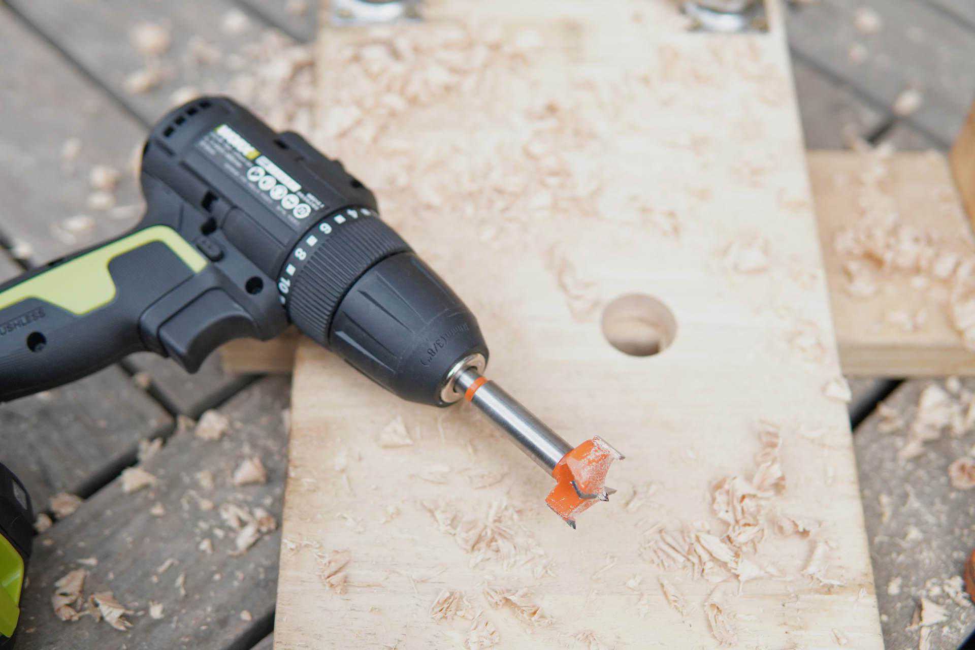我平时用28的开孔器比较多,28的开孔器在橡胶木指接板上钻孔也是非常轻松的。