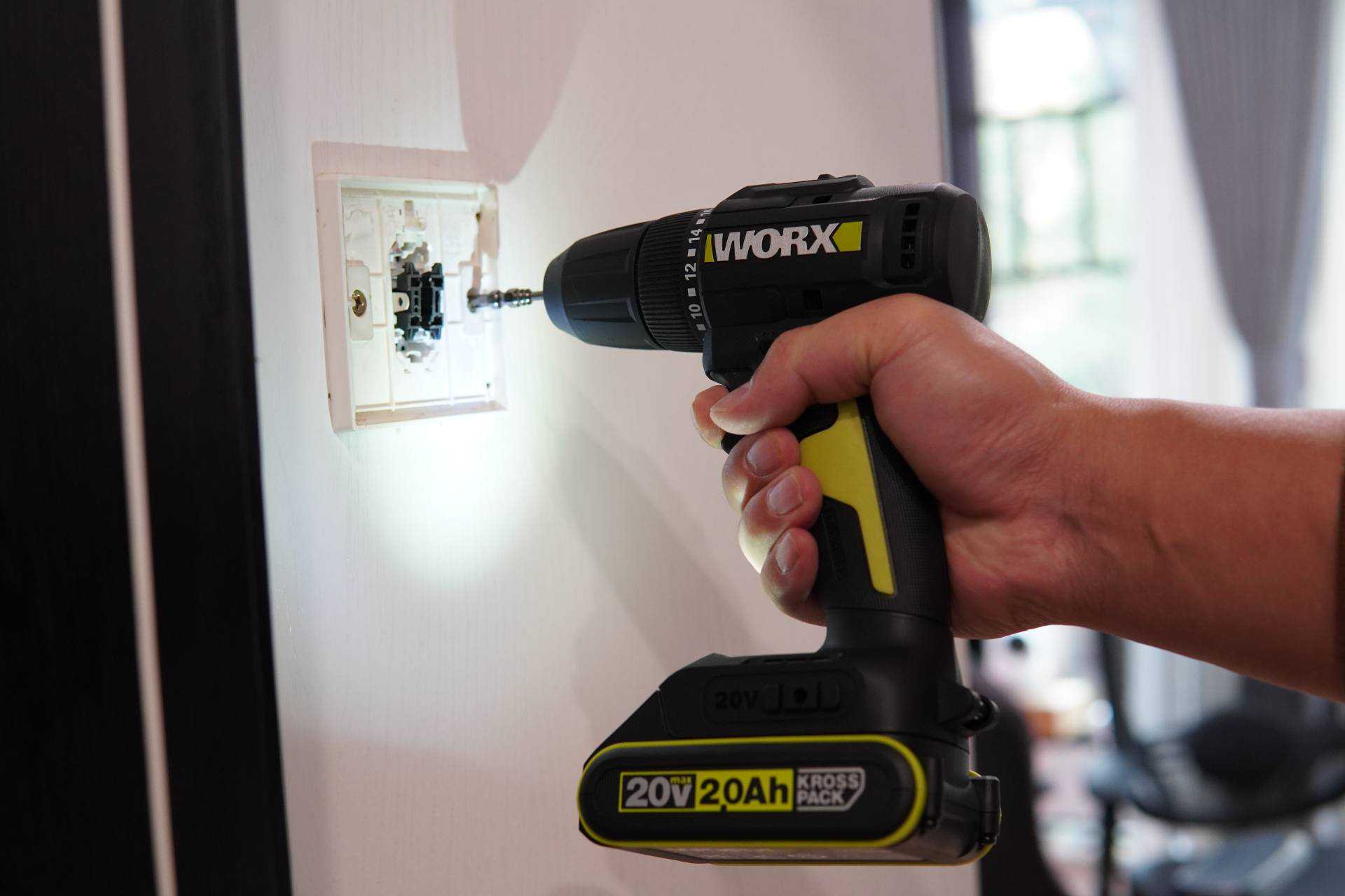 将威克士WE212切换到低速档,就可以用来拧螺丝了,平时更换开关、维修门锁都是需要用上电动工具的。我们一般建议新手朋友在使用锂电钻拧螺丝的时候,想4mm以下的螺丝,扭力档用1-6挡,在木板上拧自攻螺丝时,则适合用7-12档,需要在铝合金、铁板上拧燕尾螺丝时,最好用13-18档。