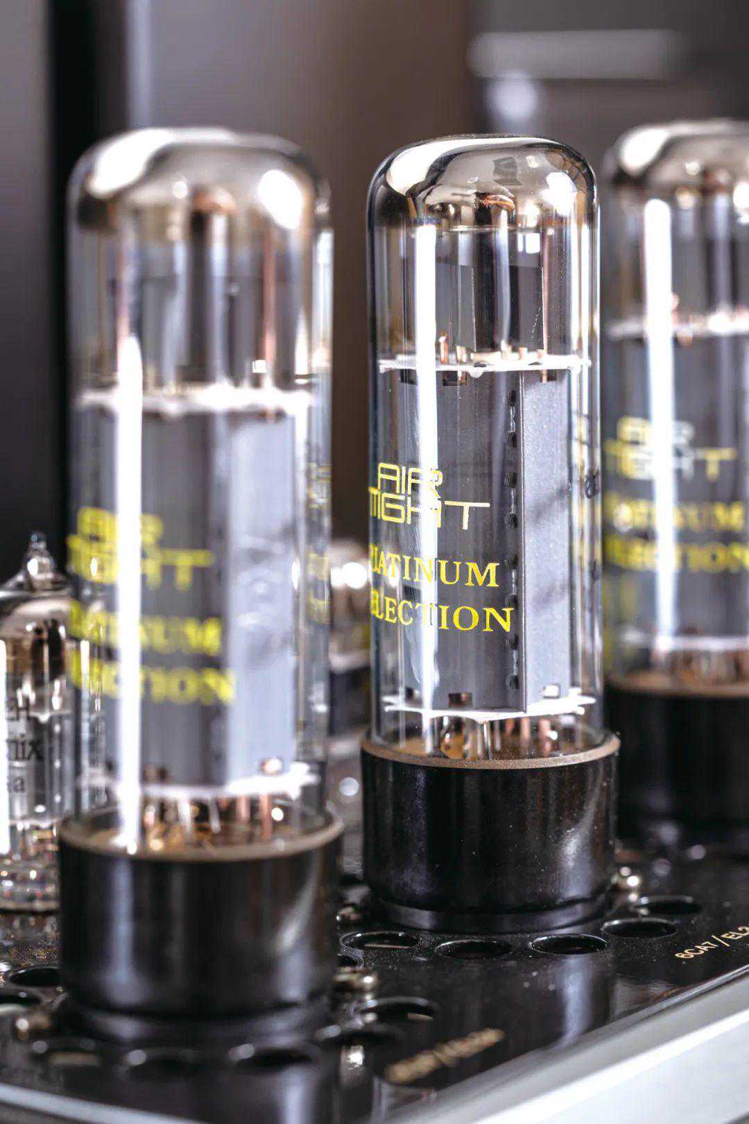 Allnic奥立的30周年版T-2000合并功放,每声道一对KT170输出功率120瓦(五极放大),三极放大时变成60瓦,由于切换成三极管时输出变压器需要多二组抽头,制作比较麻烦。T-2000的电源变压器巨大,因为它也提供输出级的独立供电,一方面充沛供电能带来更好的动态表现,而且输入级与驱动级在大功率输出时也能确保稳定。面板左侧有个按钮开关能在五极管与三极管之间实时切换,其他功放多半要关闭电源再切换,T-2000提供了另一种比较的乐趣。