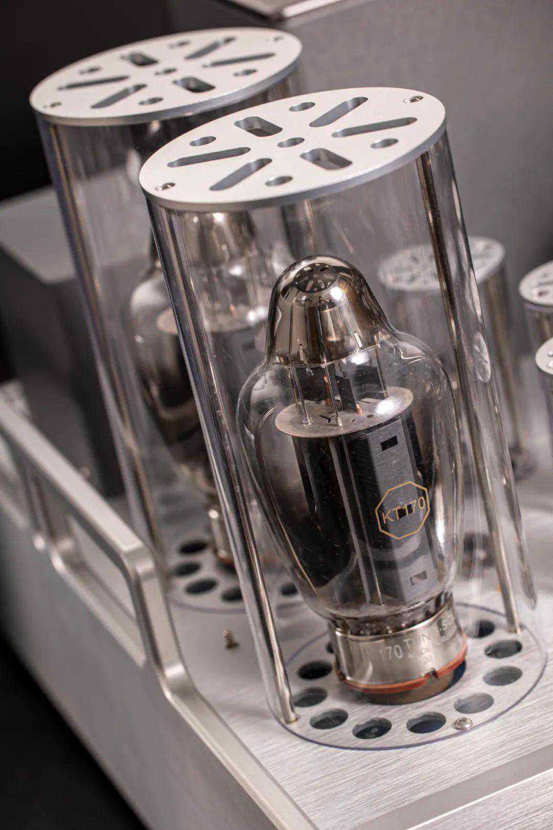 KT170同样以八屏极四极放大架构为基础,在85瓦屏耗推挽放大之下,一对管的输出功率可超过300瓦!KT170的管身高150mm(KT150高141mm),玻璃外壳为全新造型(像英式调酒器),主要考虑到承受更高压力及更有效散热而设计,加厚管身全部弧形没有平行面可以较少受麦克风效应影响。KT170加入专为音频管研发的新设计EquipotentialCathode(等电位阴极),配合辅助屏极不单大幅提高输出功率,整体工作更稳定可靠耐用,在高电压、大电流下工作依然线性。由于KT170去年底才开始供货,目前官网上仍无资料可查,而采用KT170管的胆机制品,据笔者所知也仅有法国Jadis的I-70合并功放,超线性推挽放大输出A类60瓦功率。