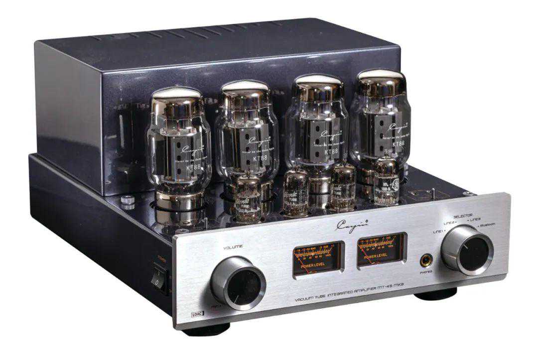 多年来斯巴克大概把主要的功率管都尝试过了,小到2A3与300B,大到805与KT170,可以说普通家庭使用的范畴已经一网打尽。不过其中最受欢迎的产品,却是输出功率中等的EL34与KT88,尤其是KT88,笔者听闻一些经销商说,那才能发挥Cayin强而有力,气势彭湃,低音有弹性的优点。长青型号MT-45既可以使用EL34,也可以替换KT88,如今以凯音Cayin为品牌的产品已堂堂迈入第三代,外观上显得更精巧细致,规格参数则在输出功率、失真率、频率响应等部分都有提升,表示输出变压器与其他元器件均有升级。