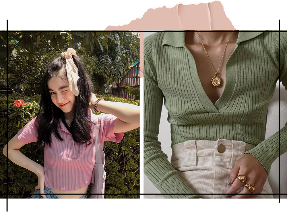 但芽芽最推荐的还是针织Polo衫,这种材质更偏女性化,搭配裤装穿起来自带慵懒法式风。