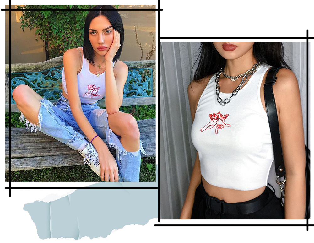 背心和吊带是自带清凉属性的单品,很多仙女苦恼穿吊带会露出肩带,但选择宽松背心就不必担心这一问题了。