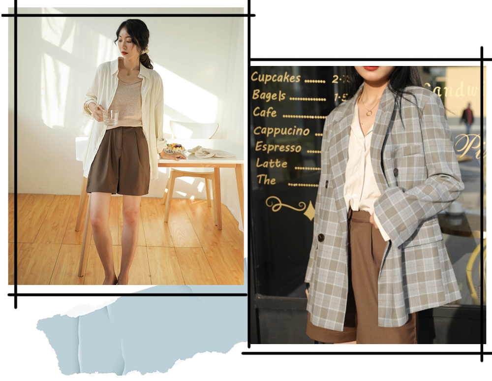 百慕大短裤没什么特定的款式,但芽芽还是建议大家买膝盖以上3cm左右的裤子,能遮住大腿还显高。
