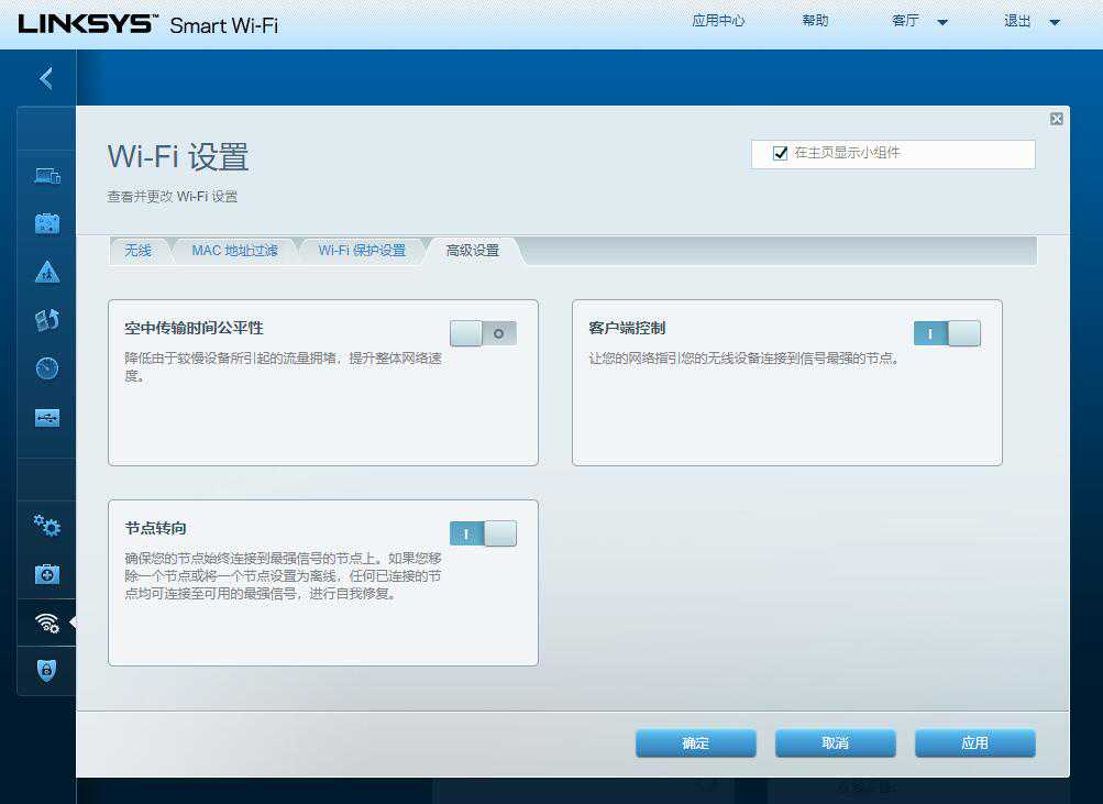 从魔盒的记录来看,在主卧、客厅、卫生间、厨房都没出现漫游,但信号全部合格,说明网络的稳定性还是不错。在路由器的后台管理界面中,可以看到节点转向、客户端控制等选项,都是在为信号漫游这个功能服务的。不过漫游的阈值是信号强度低于-70dBm,对于我家的信号环境而言还比较难实现。等我们搬进4层的联排之后,这个漫游的情况应该就会非常频繁了。