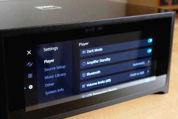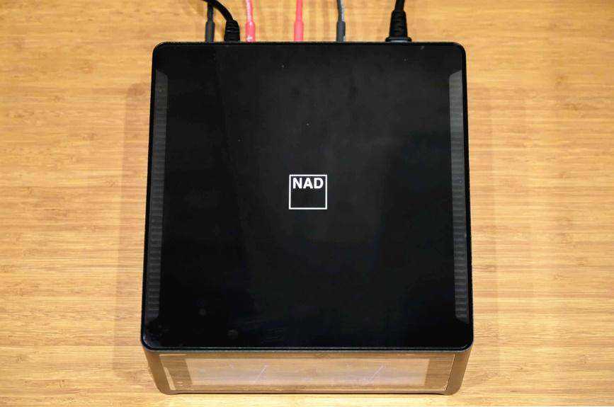 NADM10的工业设计由获奖设计公司DF-ID操刀,外观造型将极简主义主题提升到了新的高度。215×100×260mm的体量,比常见的放大器要迷你的多,可以随心地安置在任何地方使用,就算放在桌面上做近场聆听也行。采用招牌哑黑色的机身,由CNC加工的实心铝材打造,表面经过磨砂工艺处理,质感出众的同时更具良好的抑振性能。机身正面配置有7吋触控全彩液晶屏,M10所有的菜单设置和播放控制都可以通过其方便地操作,播放中液晶屏除了可以显示详细的播放信息、漂亮的专辑封面外,还可以设定成跳动的VU表头显示,非常有味、非常吸引人。散热孔则不显山露水的布置在机身顶板的左右两侧,正面和顶板都以康宁Gorilla大猩猩玻璃覆盖,顶板中央的NADLogo在开机时还会透出红色或白色的亮光,如此巧妙设计在保证散热能力的同时,更为M10带来了充满想象空间的未来感。