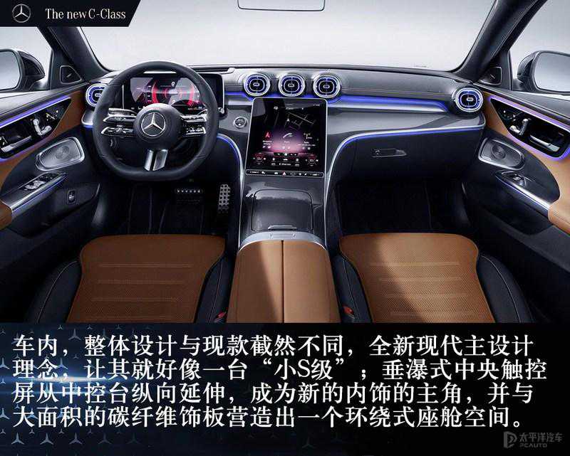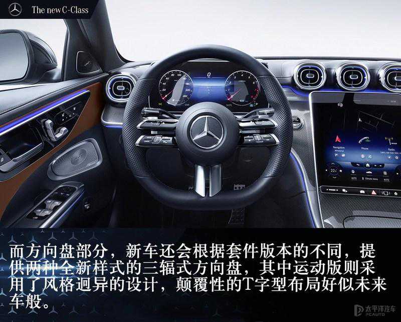 而2月23日,全新一代梅赛德斯-奔驰C级(第五代;W206)轿车横空出世,最新一代的家族式设计语言,内饰风格延续了S级,造型更激进年轻,各种花样繁多的科技配置成了主角,而动力上全系告别了V6/V8引擎,转而根据配置的不同搭配48V电机和强混电机。