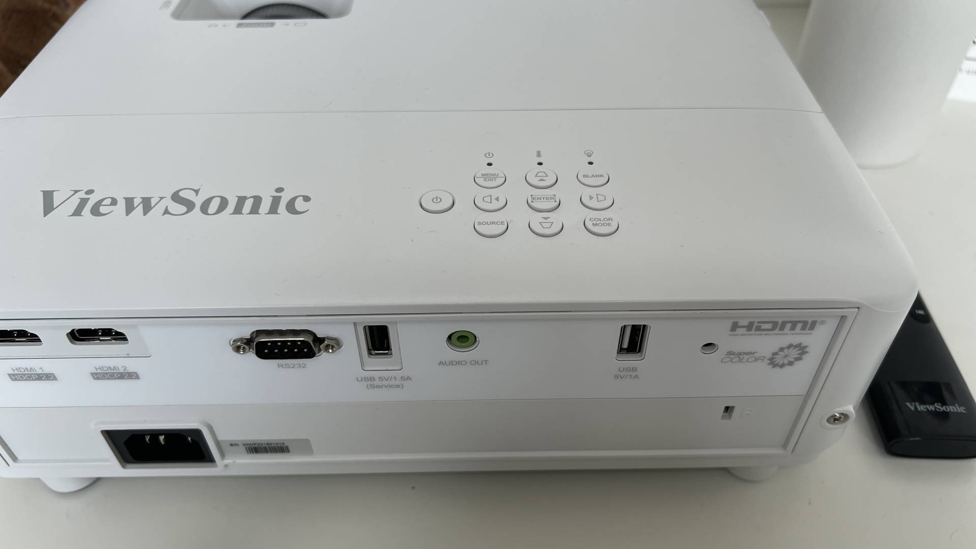 优派K701的背后,是HDMI接口X2,USB口X2,3.5mm音频输出,RS232,内置音箱10W,
