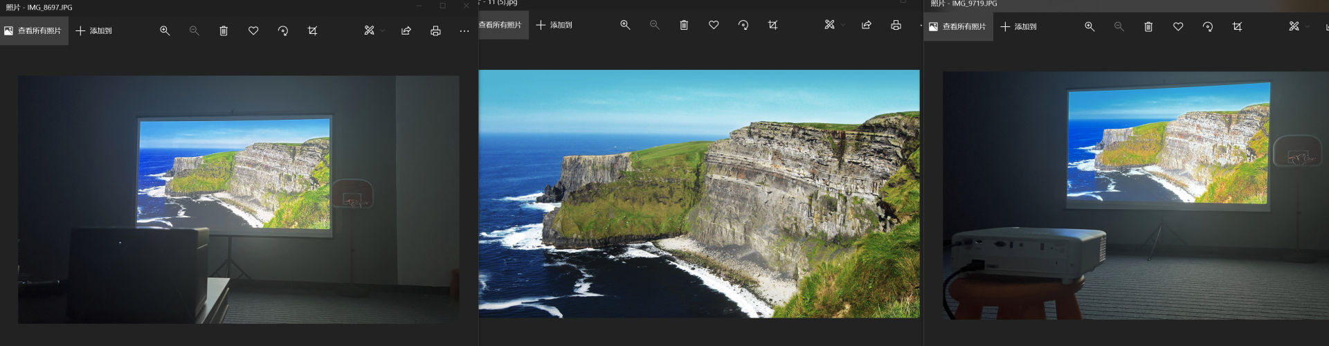 左边是当贝X3pro中间是原图的右边是优派K701我都是电脑上截图打开,以下都维持这样。