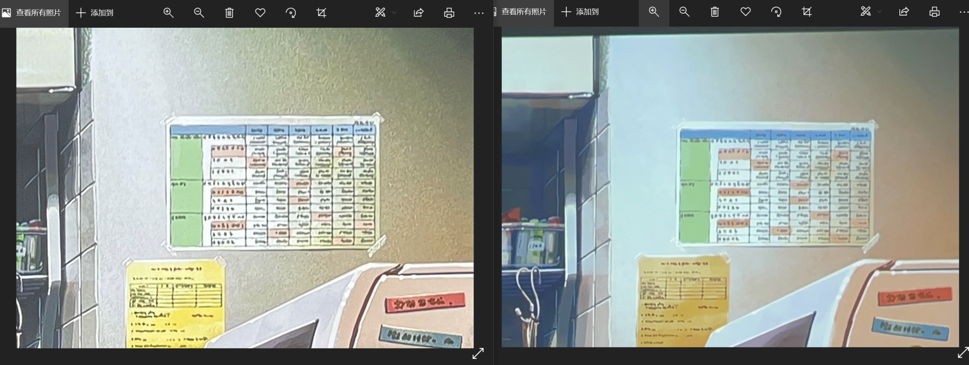 再来说说这个同墙拍这张图是争议最大的,这张图,同墙实拍,同电脑,同一图输出,为啥相差如此大差距呢。左边是当贝X3pro右边是优派K701