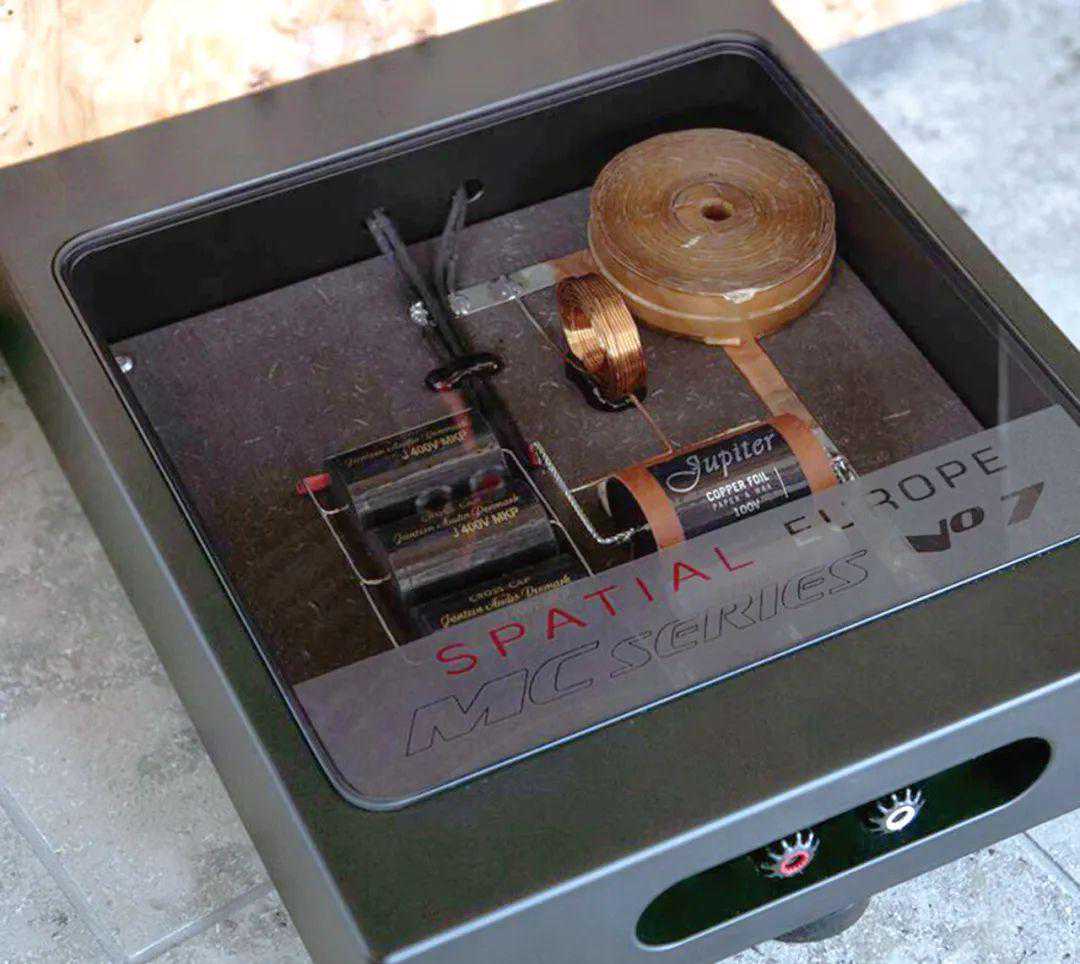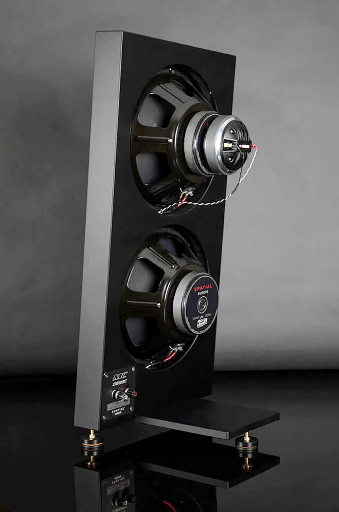 SpatialEurope(音乐空间)障板音箱使用的单元并不拘泥一格,针对不同型号与不同特性使用订制单元。例如最新的MC-No4MKII音箱,15吋低音和10吋中音都是双音圈结构,44毫米的同轴号角单元则是双向发声方式(朝后有一个软高音单元),所以声音的密度和质感有着大幅度的提升。