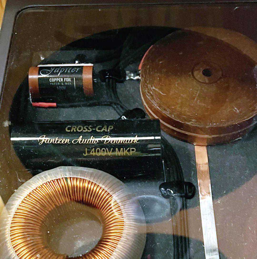 手工制作的分音器不用线路板,细心配对的元件用铜箔来连接,与Jantzen电感完全一样,这样既可以避免因接线导致音色上的差异,又增加电流通过的截面积,速度也更快。