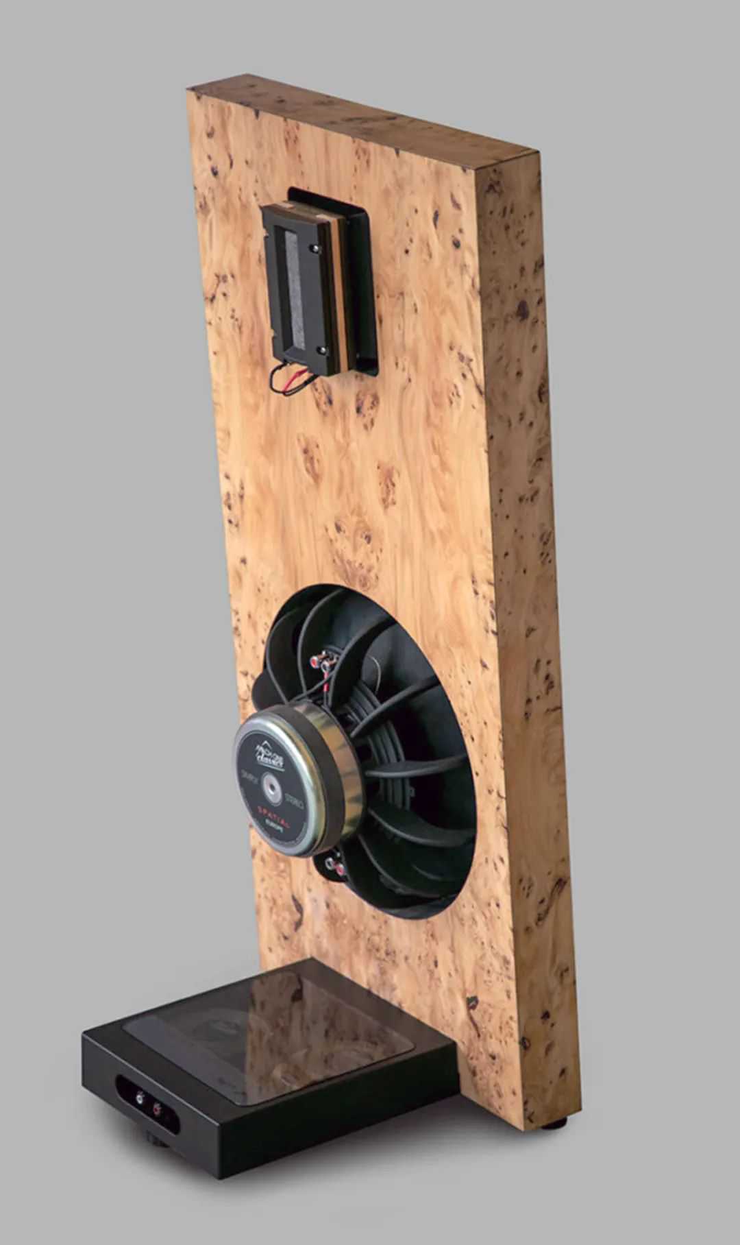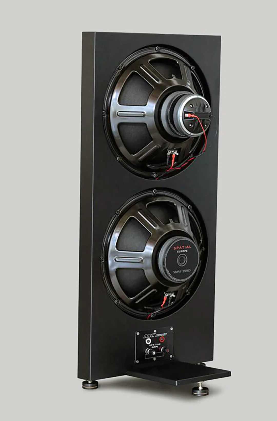 SpatialEurope(音乐空间)障板音箱是如何设计并不清楚,唯一可确定的仍需12-15吋的大口径低音来提升低音效率,我们因此看到有形式各异的低音单元。