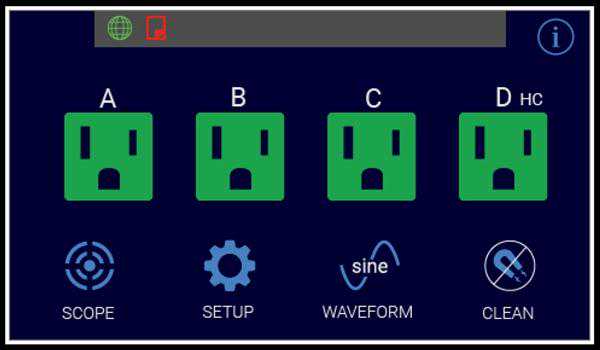 P12的主画面,其为触控彩色屏幕,可以看到有A,B,C,D四个主要区域的运作显示,下方有SCOPE,SETUP,WAVEFORM,CLEAN等功能选项。
